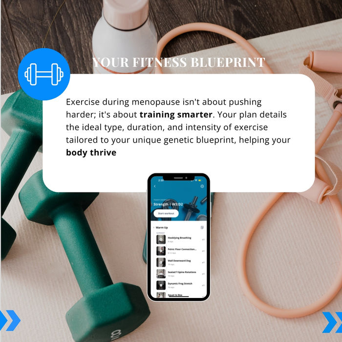 You’ll receive tailored exercises to enhance balance, mobility, and pelvic floor strength, along with a personalised cardio and strength routine to support bone density and muscle mass.